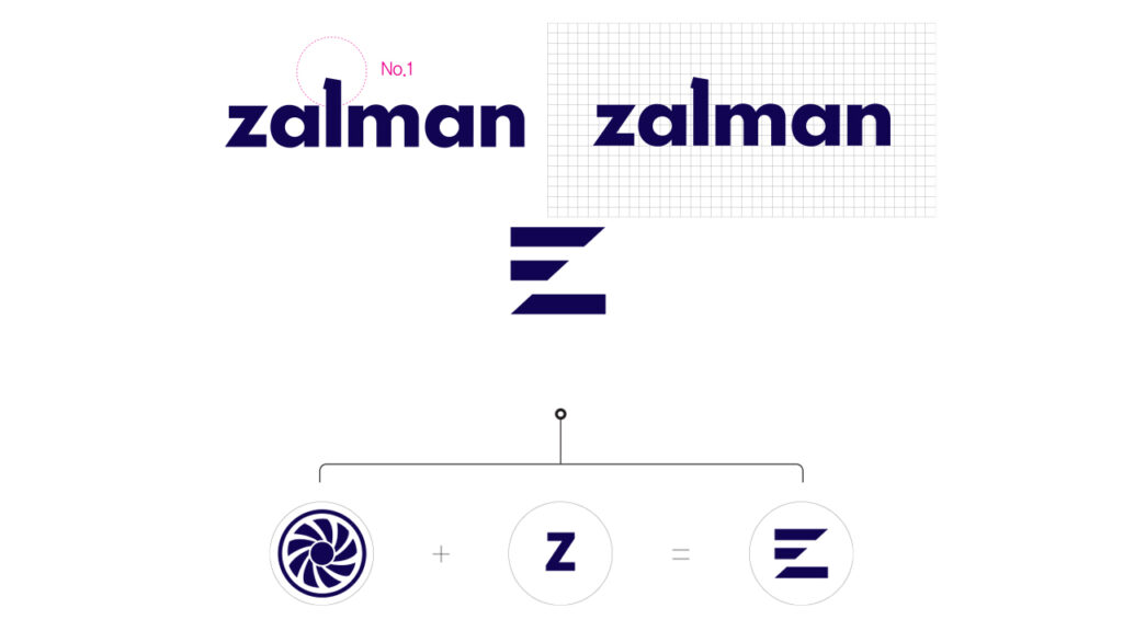 Ahogy a gyártó kifejti, a tűz/meleg ellenőrzésének képessége a vállalat identitásának középpontjában áll. Ezen túlmenően a koreai trigram szerkezet és a használt angol kezdőbetűk kifejezik a büszkeséget, hogy Dél-Korea reprezentatív márkája, valamint a változás és a további fejlődés iránti elkötelezettséget sugallják. A Zalman elsődleges színe mostantól az “Excellent Dark Blue” (CMYK: C100, M100, K55 / RGB: R29, B219, B73 / #1D1349), amely az átláthatóságot és a hűvösséget szimbolizálja.
