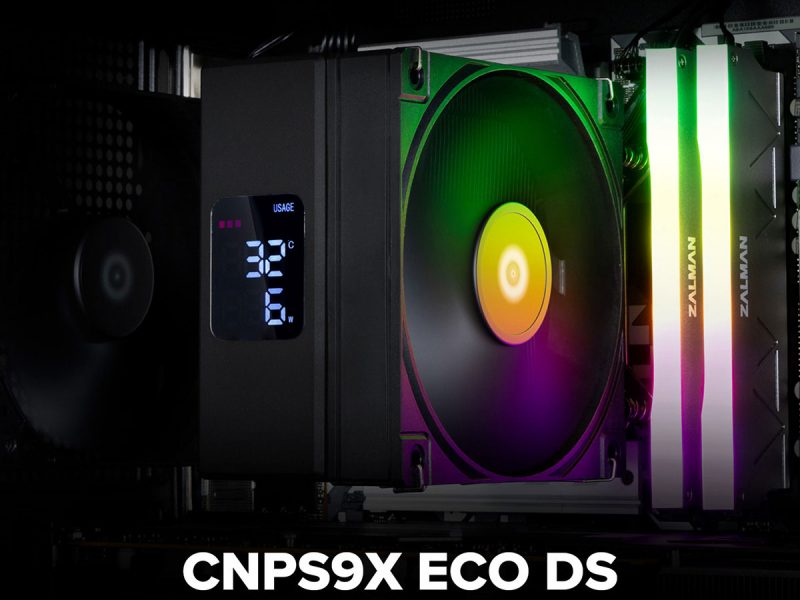 Ez a CNPS9X ECO DS, egy kompakt toronyhűtő, amelynek tetejére mini kijelzőt raktak. Ez élőben mutatja, mennyire fűti fel a processzor a gépet: hőfok, terhelés, fogyasztás — mind kint van a tetején, mint egy autó műszerfalán. Ha tuningolsz, vagy egyszerűen szeretnéd tudni, mikor kezdi el „izzasztani” a játék a vasadat, ez a kis panel aranyat ér.